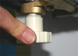 ●上下ハンドルを時計方向に回し、氷に氷押さえのクギをくいこませて確実に固定します。不十分ですと氷が飛び出る恐れがあり危険です。