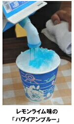 「イチゴ」は甘すぎないし、しっかりした酸味があるので飽きずに最後まで食べられます。チューブ式の練乳を用意して、お好みでイチゴミルクにしてお出しし ています。「ハワイアンブルー」はライムの味で少し酸味が強めでさっぱりしています。「メロン」はほんとのメロンの味がします。