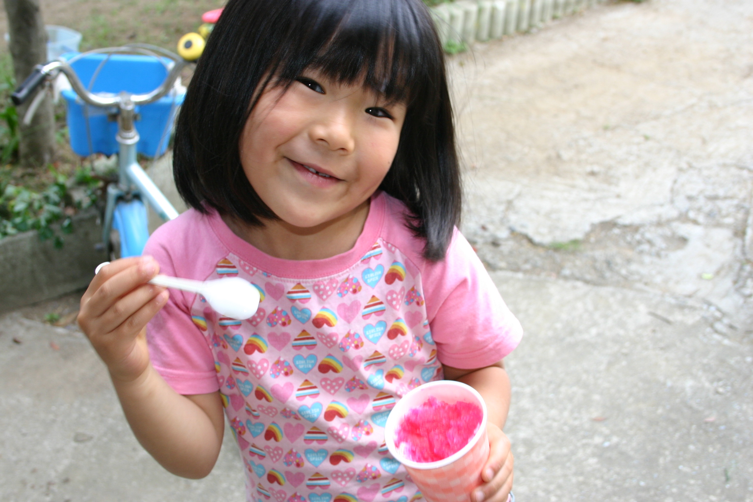 氷が大きい時程、粉雪の様な氷が出来て、イチゴのシロップも