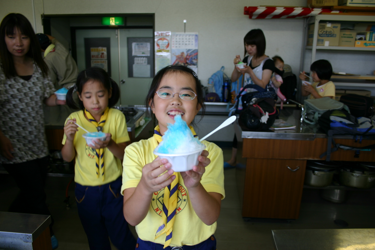 Q. 残暑が続くので、今年の町内会の秋祭りは、かき氷の模擬店をして子供たちを喜ばせようと